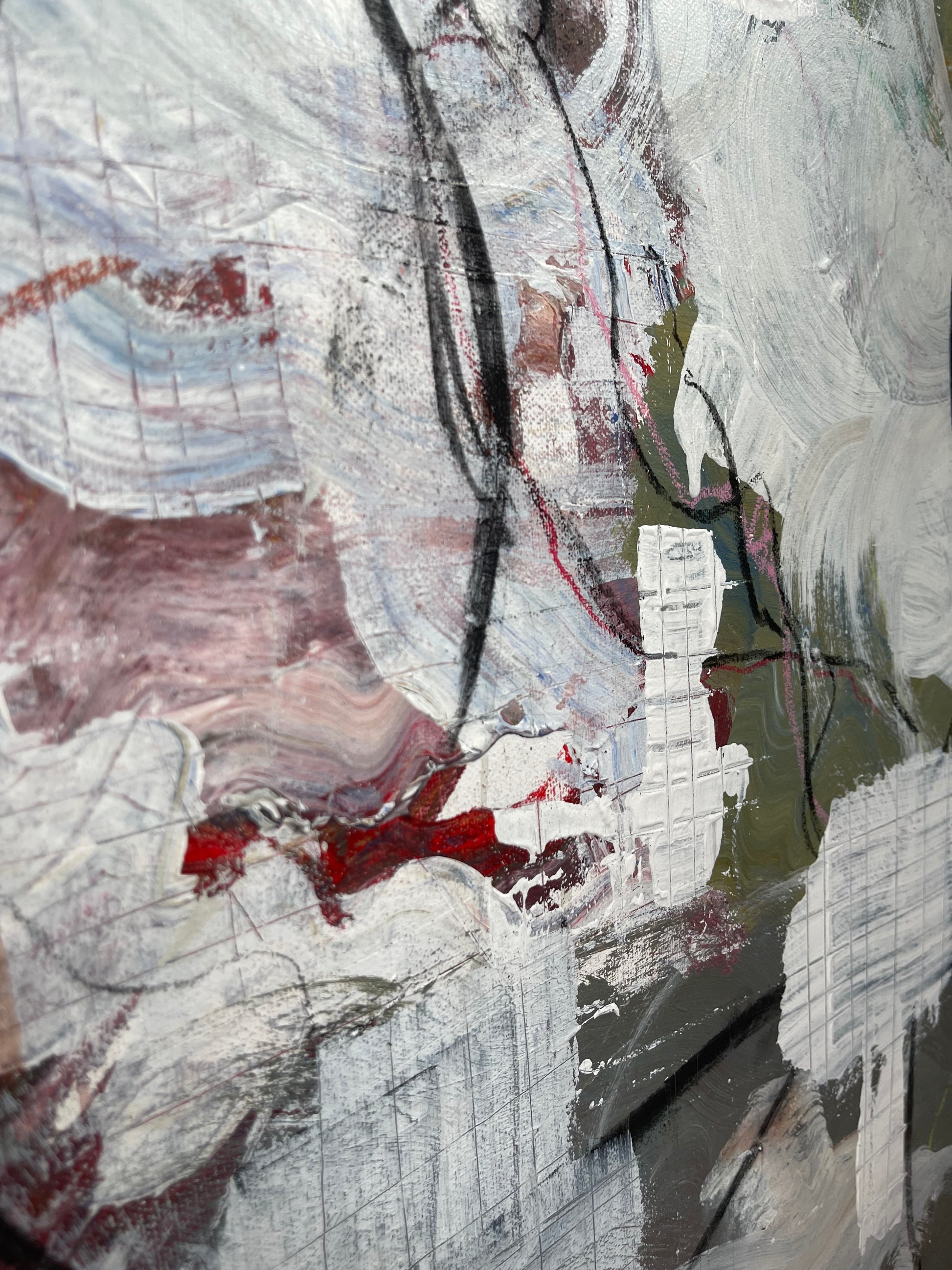 Made with moulding paste, acrylic paint and charcoal on box canvas.
