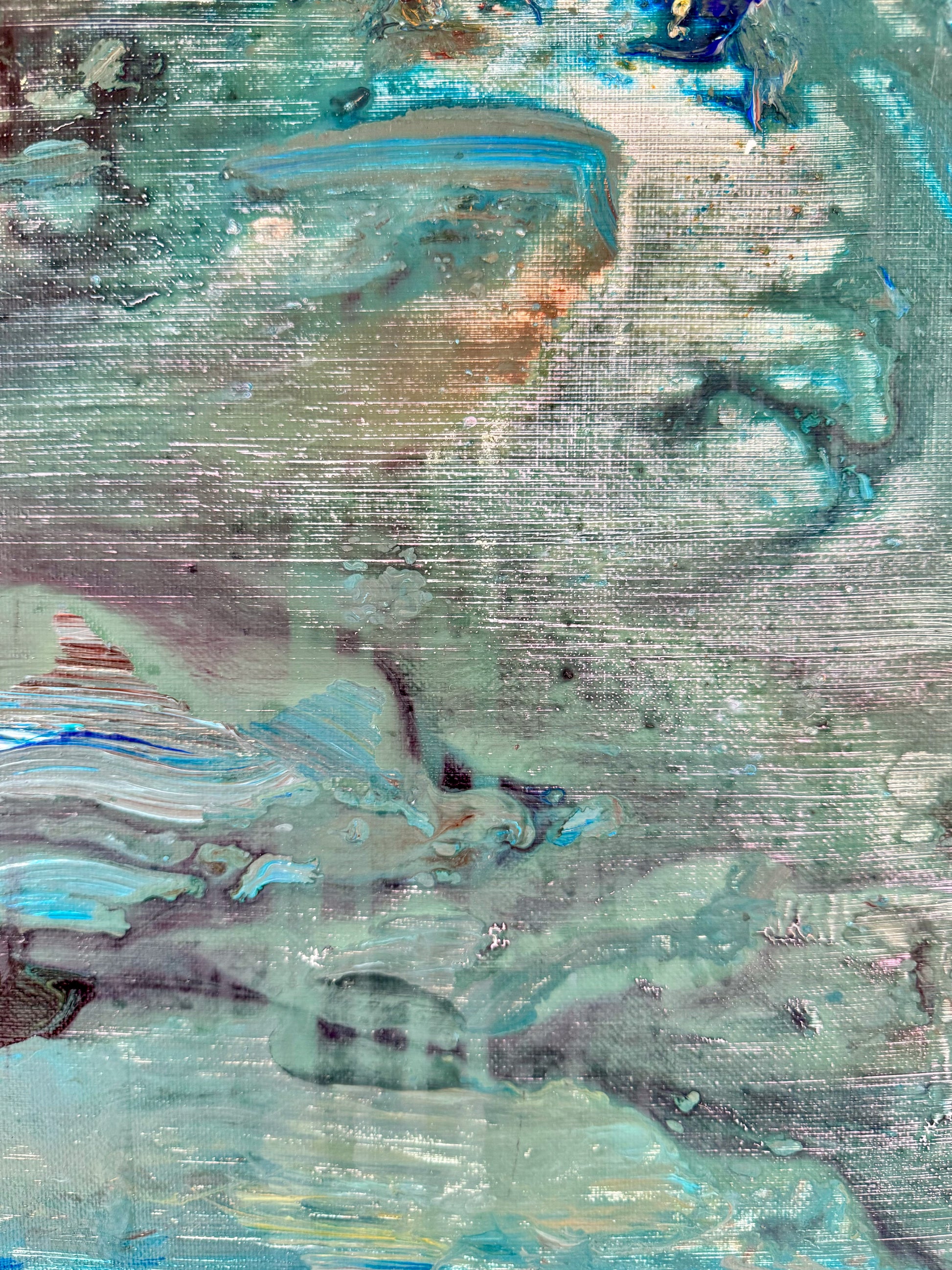 Textured mixed media original abstract painting by Timothy Betton exploring the movement of water. Timothy is greatly inspired by water, living onboard a narrowboat and painting in his floating studio.