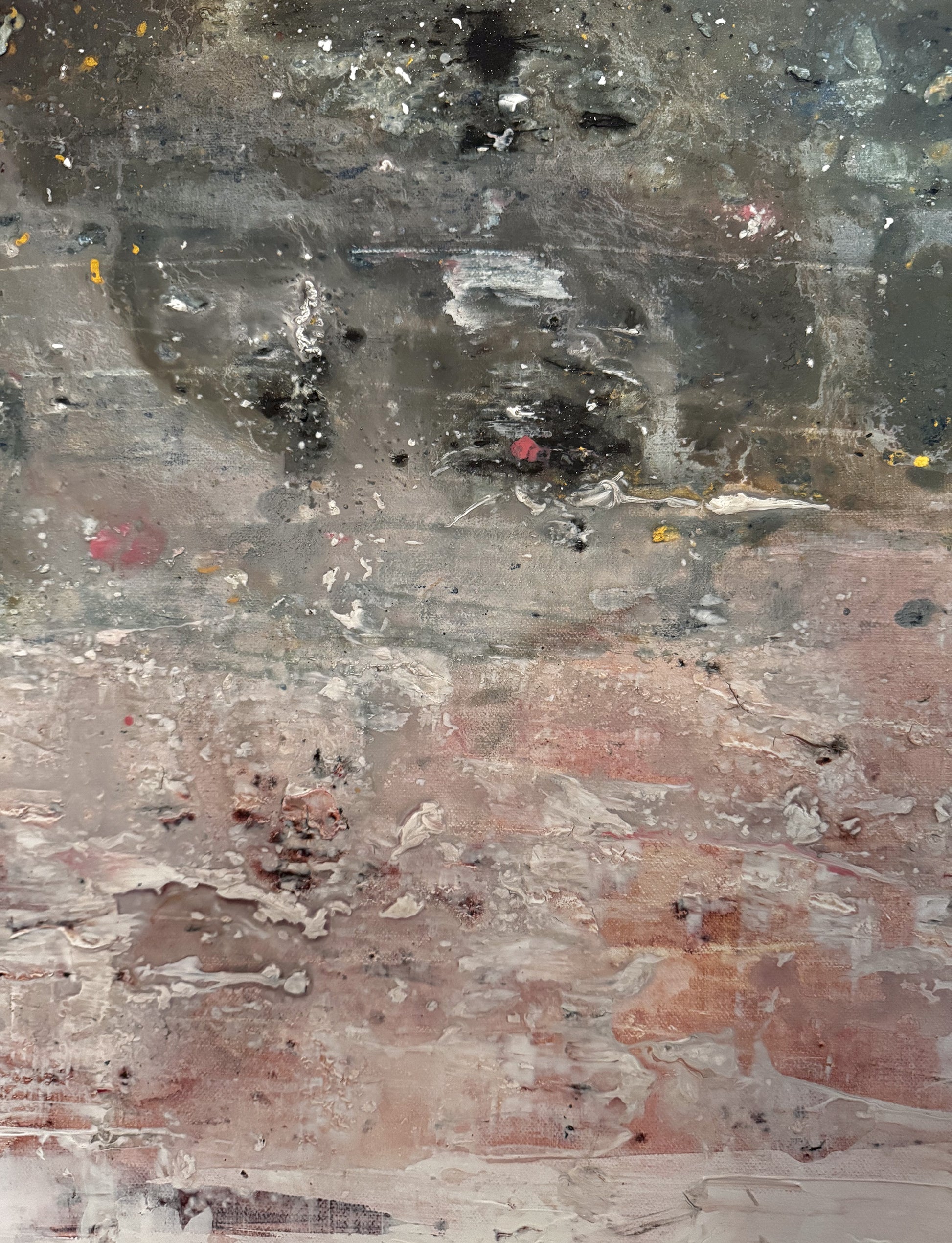 Made with moulding paste, acrylic paint and ink on box canvas.