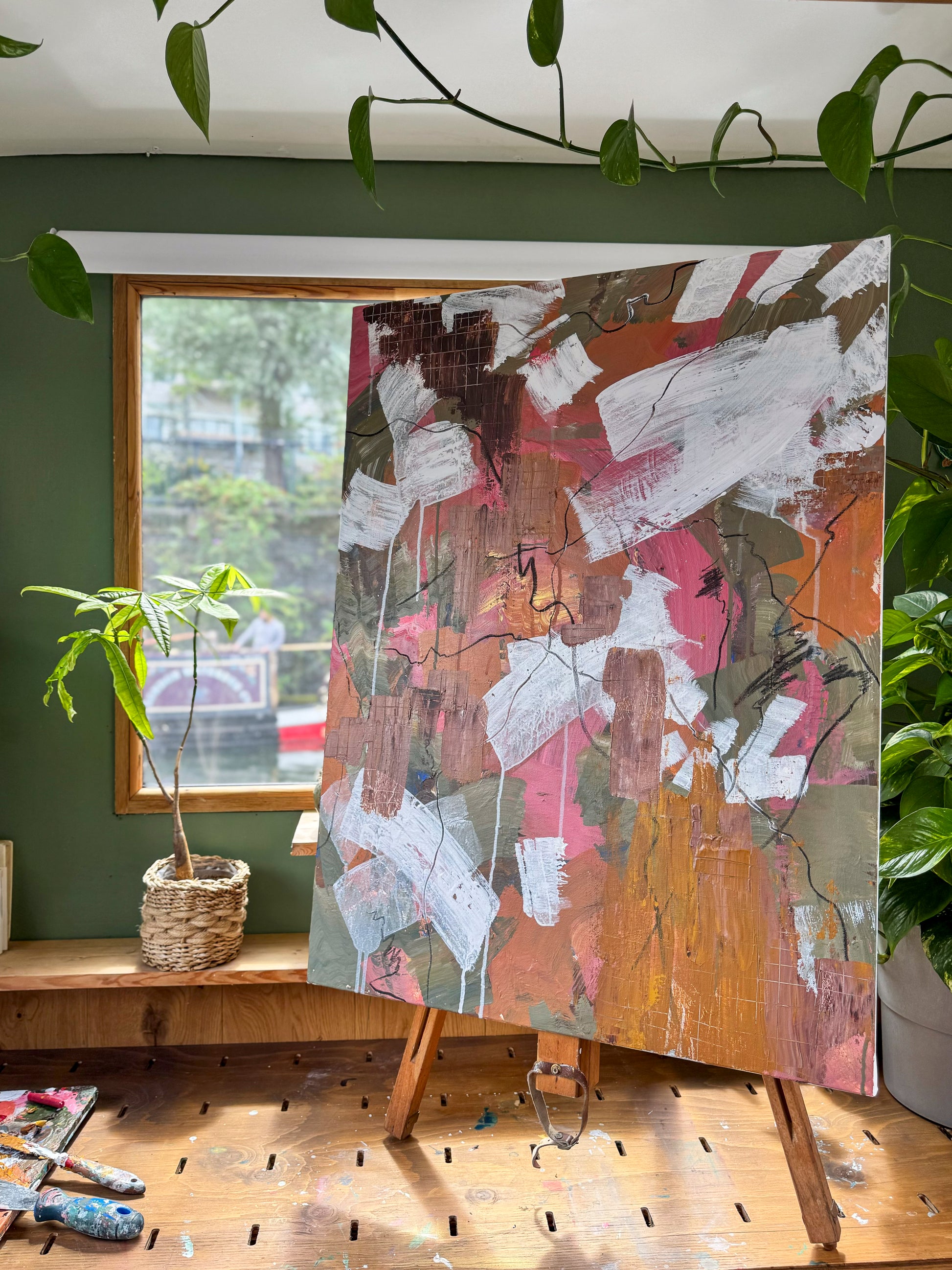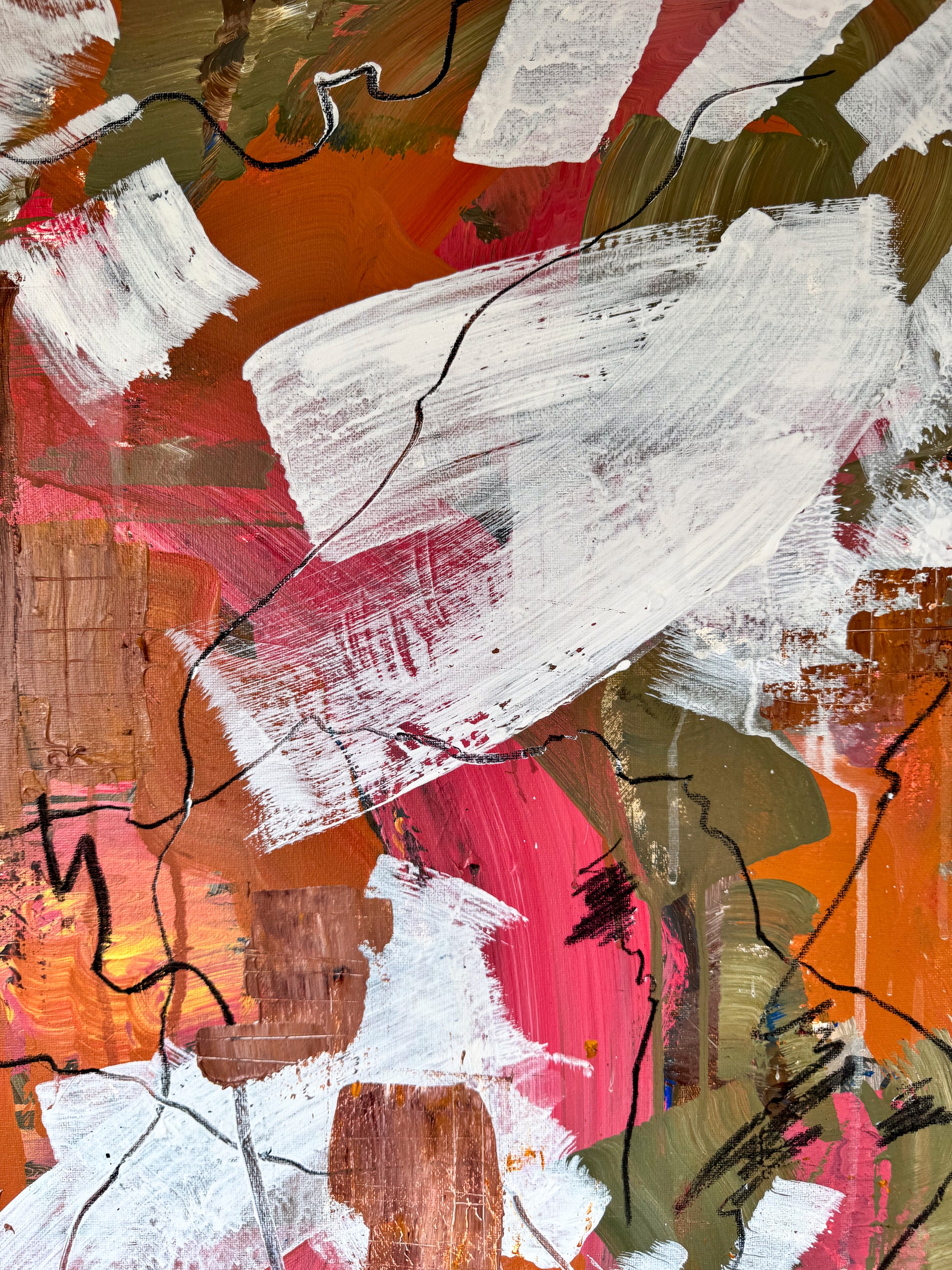 Made with charcoal, acrylic paint and ink on box canvas.