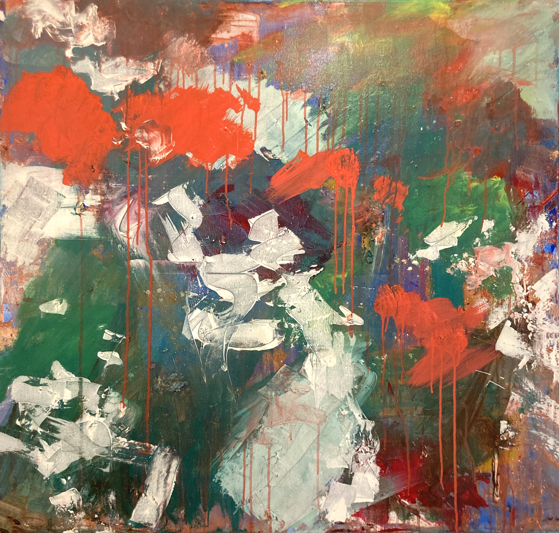 Made with acrylic paint and ink on stretched canvas. Varnish finish.